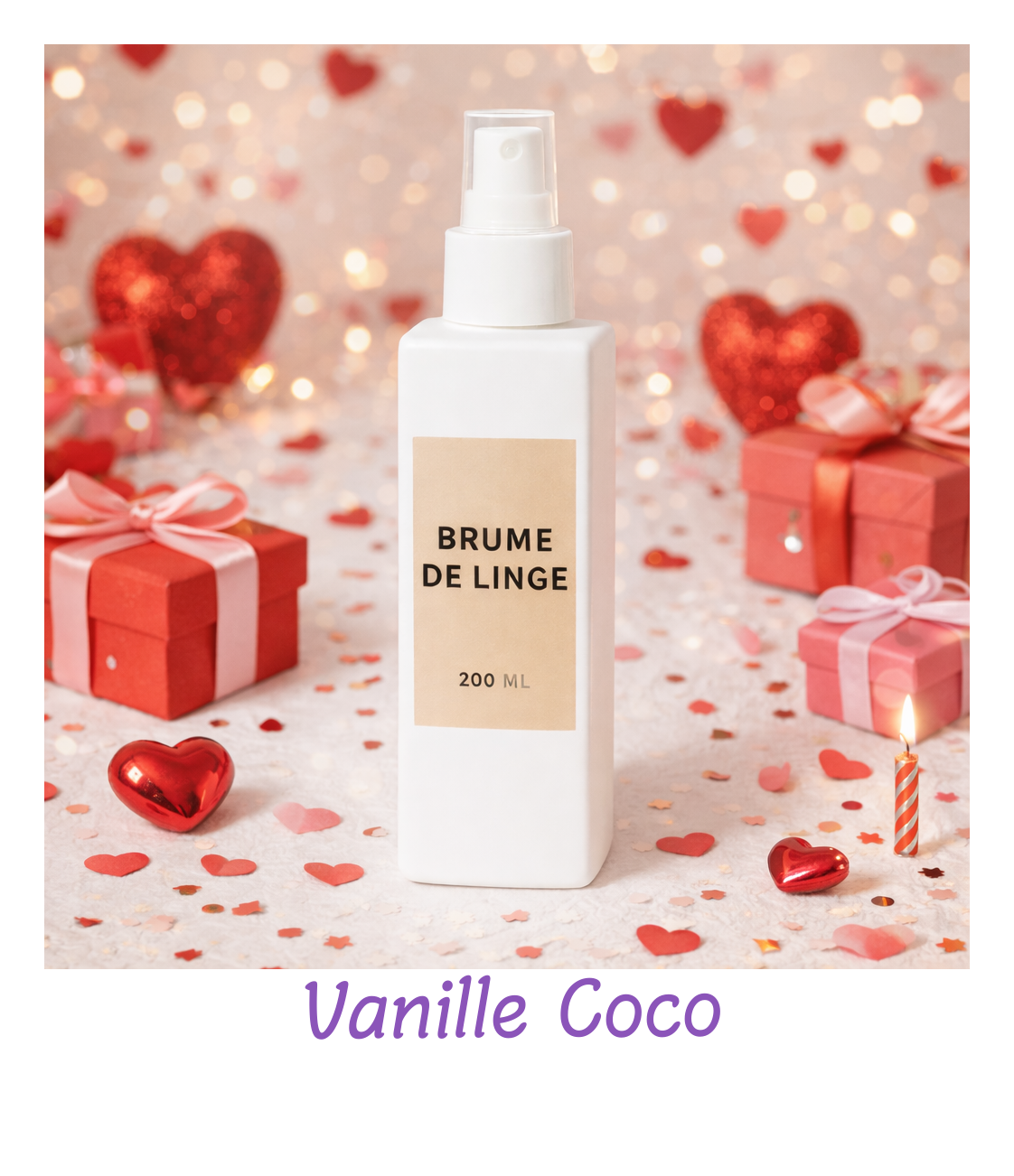 Brume parfumée douce et gourmande pour textiles et air ambiant.