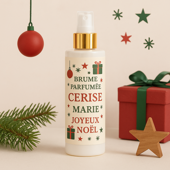 Brume parfumée corporelle & textile personnalisée – Spray diffuseur Joyeux Noël & Prénom 100 ml – Cadeau jour de l'an Nouvel Année– 50 senteurs disponiblesBrume Parfumée Personnalisée Cadeaux Noël
